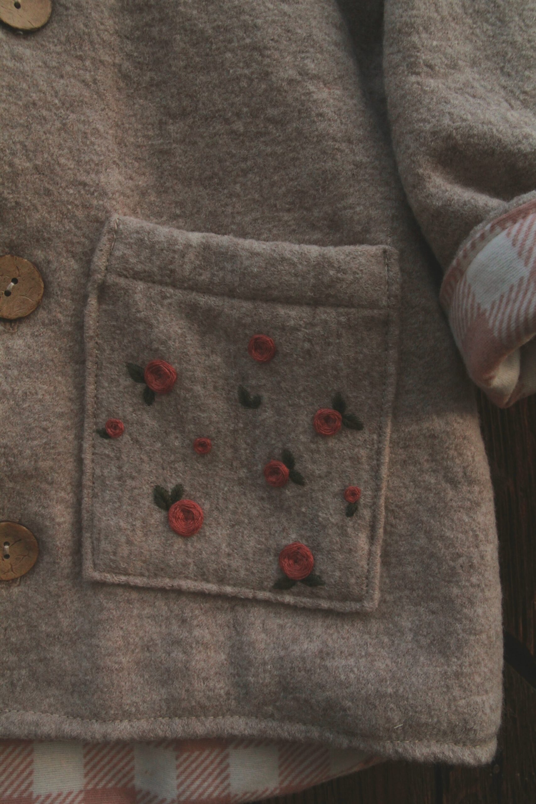 Wełniana Kurtka Merino z Ręcznym Haftem – „Róże”