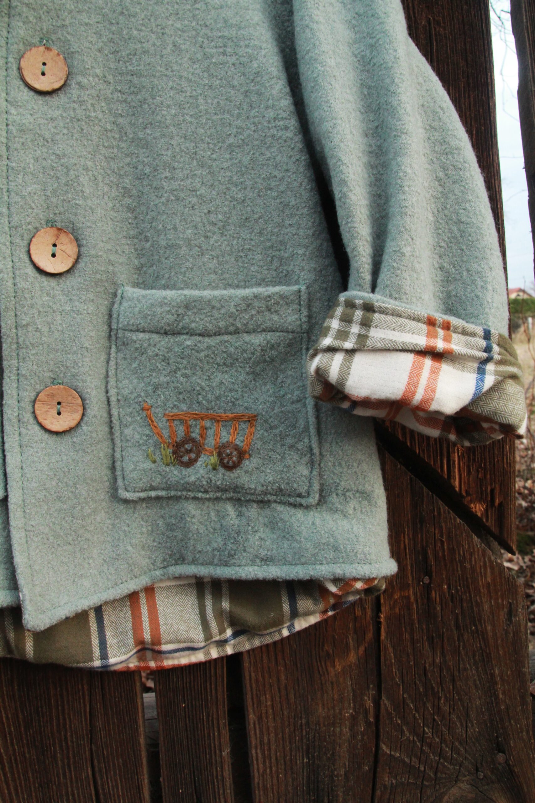 Wełniana Kurtka Merino z Ręcznym Haftem – „Wózek”