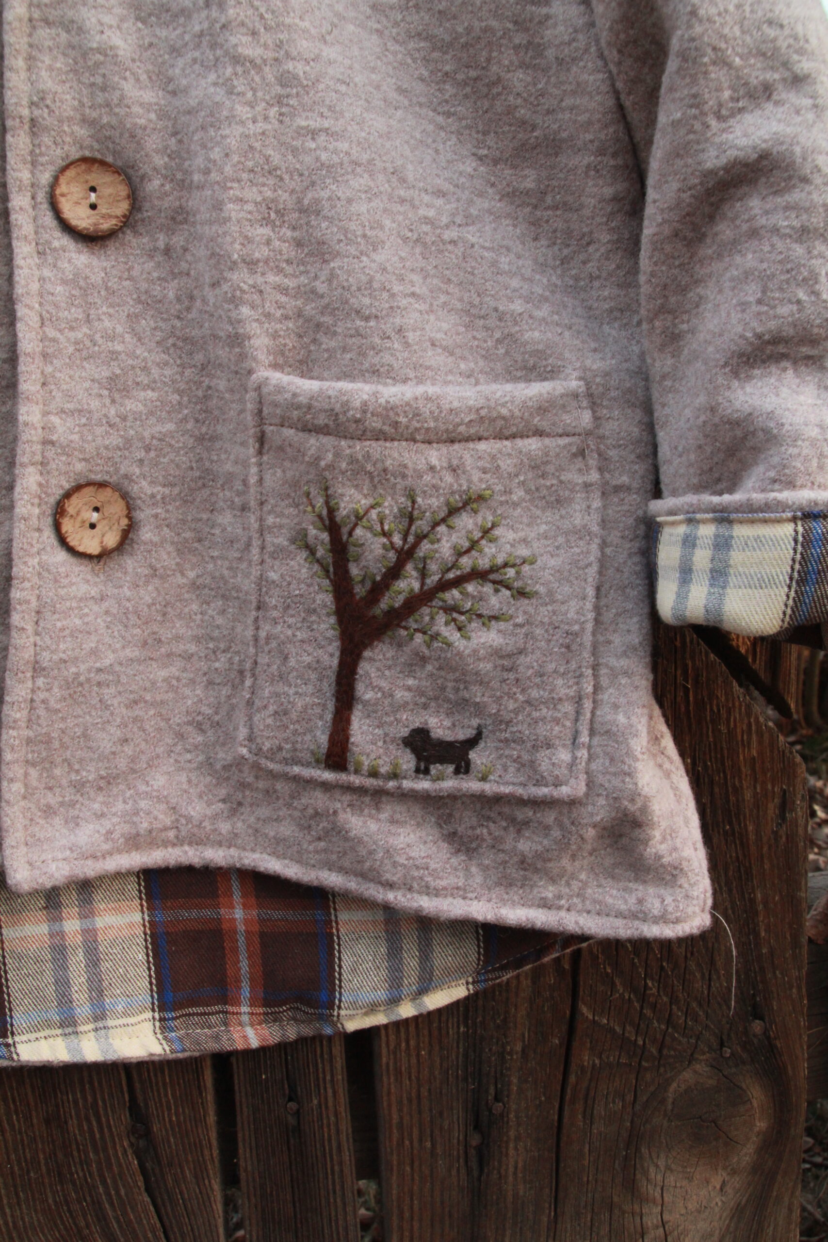 Wełniana Kurtka Merino z Ręcznym Haftem – „Drzewo”