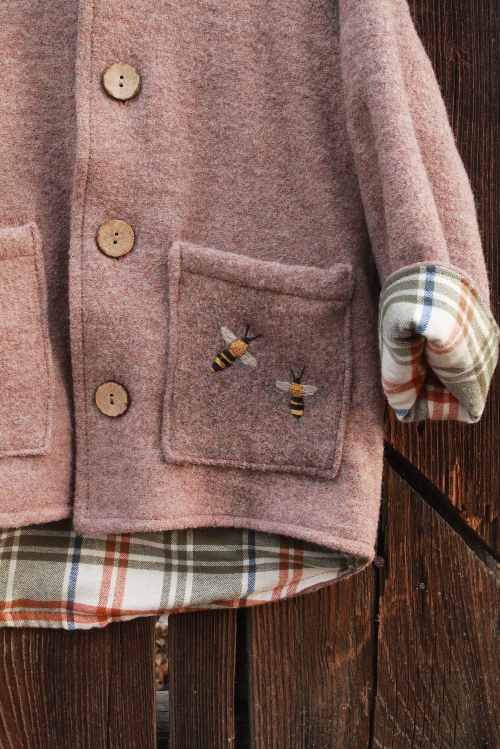 Wełniana Kurtka Merino z Ręcznym Haftem – „Pszczółki”