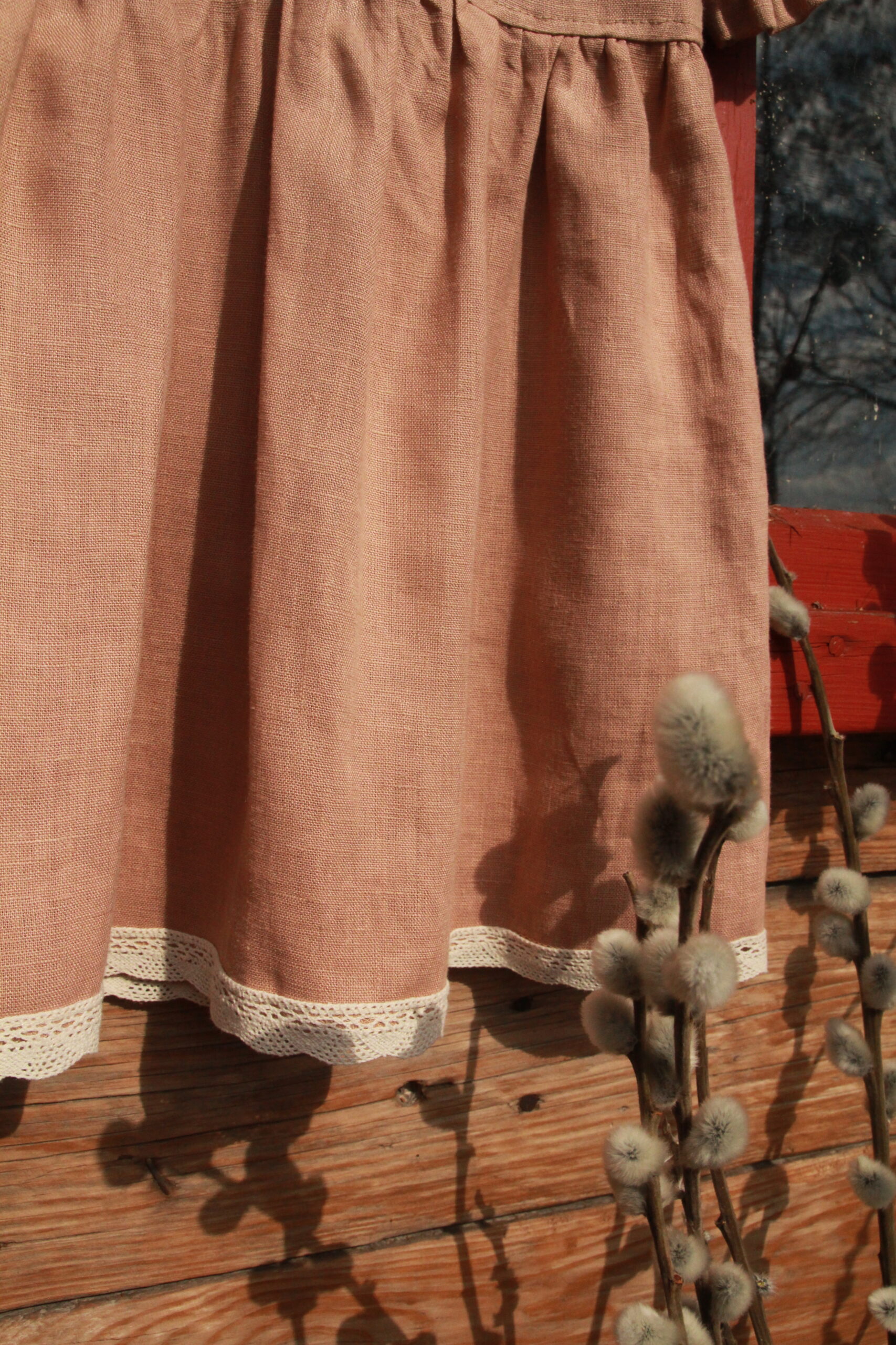 Sukienka jest wykonana ze 100% lnu o gramaturze 200g/m2.