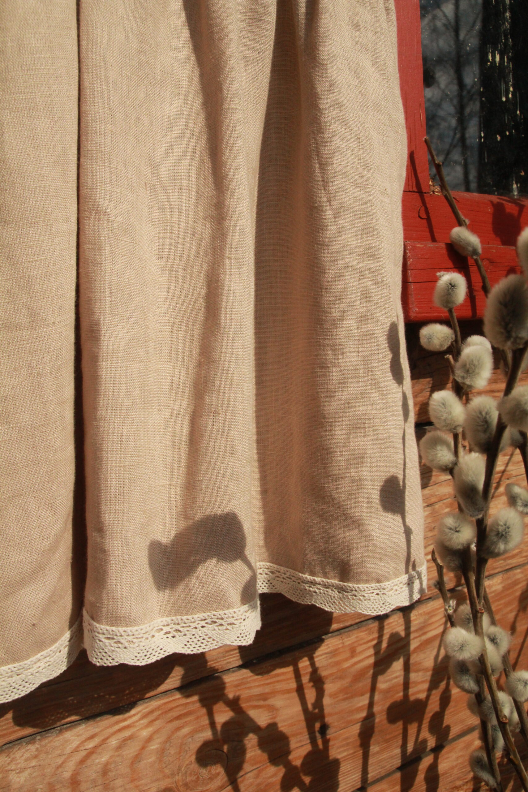 Sukienka jest wykonana ze 100% lnu o gramaturze 200g/m2.