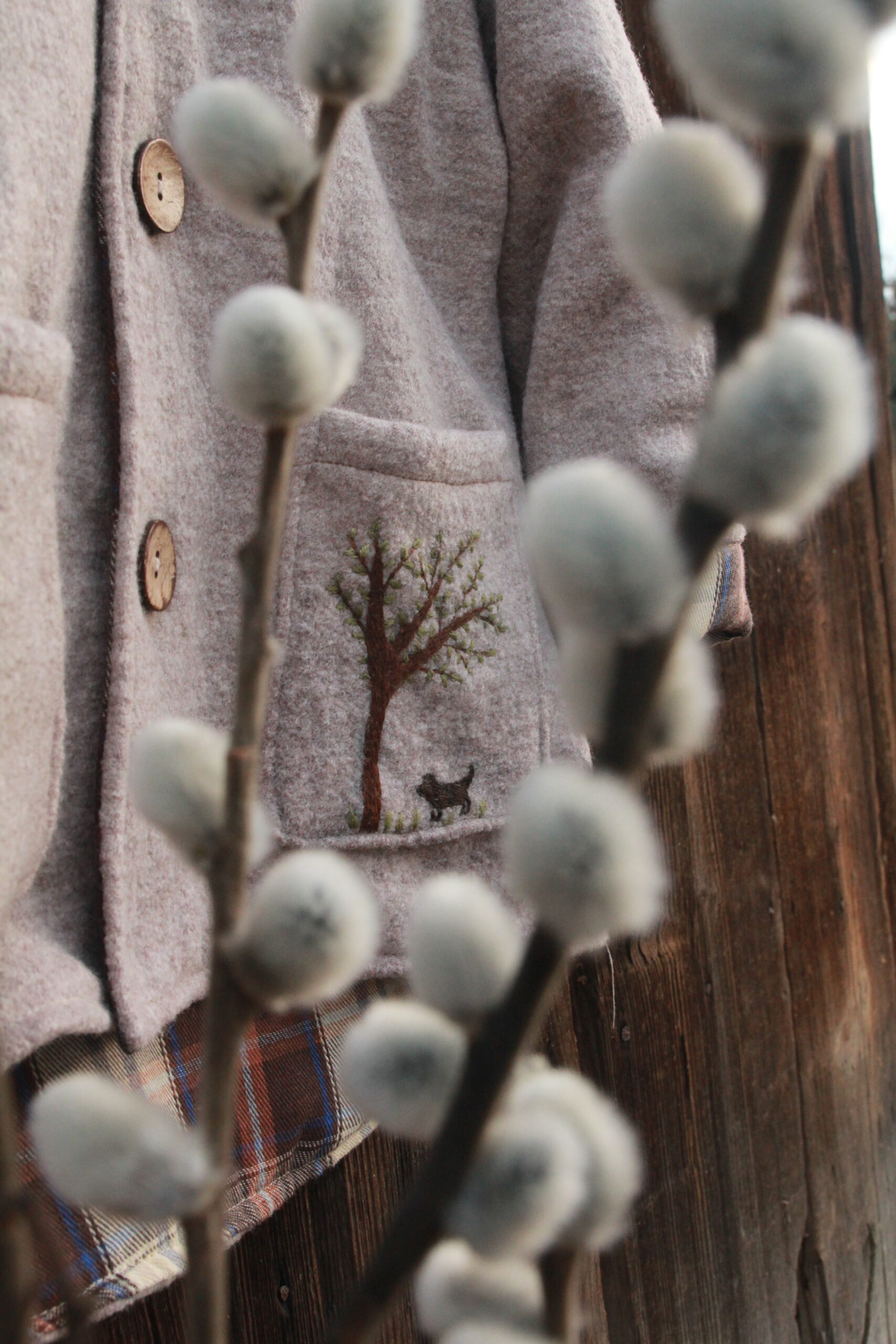 - Wełniana Kurtka Merino z Ręcznym Haftem – „Drzewo”